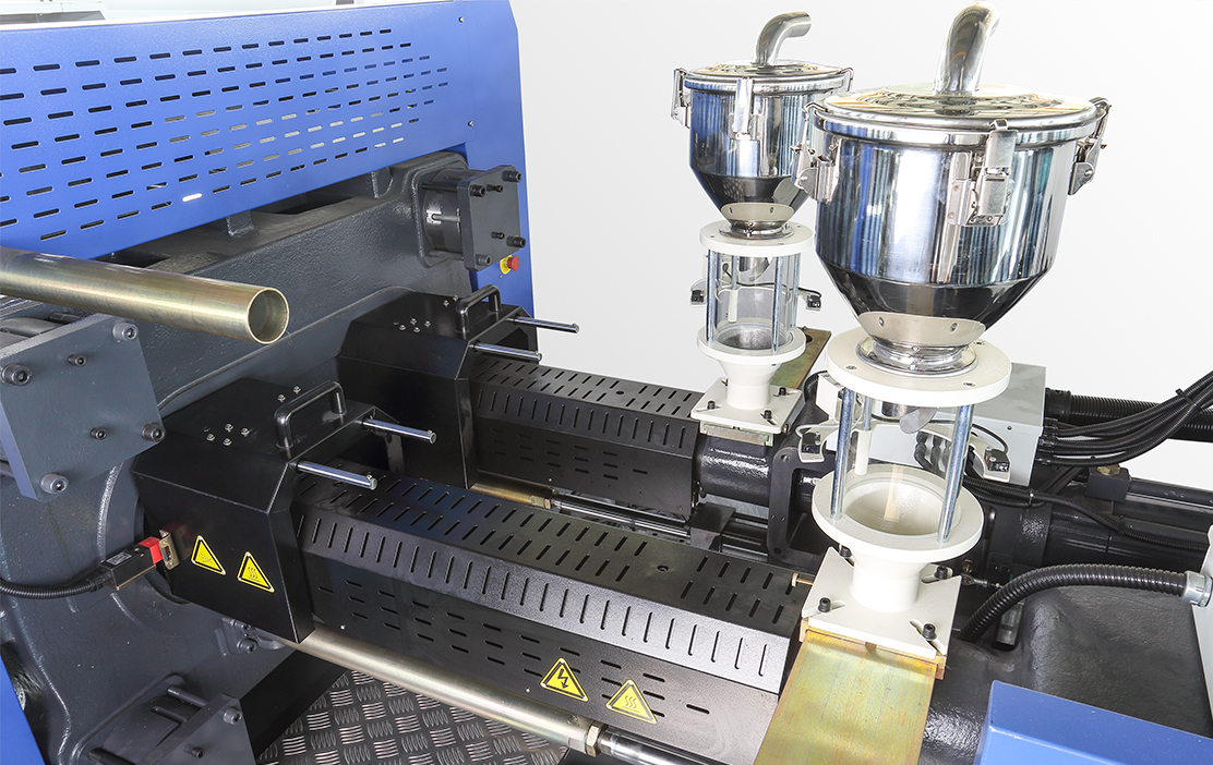 1.自動托出轉盤,保證轉盤轉動時與模板不接觸,避免摩擦損耗造成故障,同時使得模具始終與模板保持平行。2.轉盤轉動由伺服液壓閉環控制,該控制方式是有高性能比例方向閥、大扭矩液壓馬達、高進度旋轉編碼器和運動控制卡實現的,保證轉盤轉動時快速且精確。3.轉盤配置冷卻水連接裝置和全新模具分體安裝借口。4.射出部分有兩組獨立的單缸注射結構,同步做射出動作,雙色一次成型,可大幅縮短成型周期。5.單缸注射結構,慣性小,線性導軌導向,注射平穩,進度高。